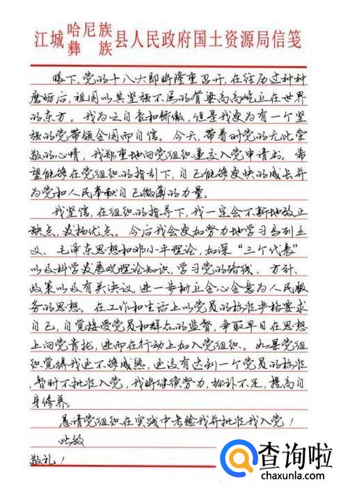 在写入党申请书的时候我们一般选择手写,而且所采用的只是比较正规的带有学校抬头的红色信纸,可以如下图所示。开头写在中间的是入党申请书几个大字。然后另起一行,前面先写上称谓,比如说敬爱的党组织。