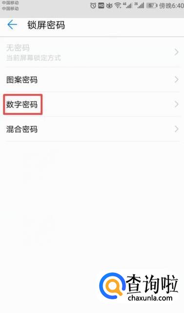 之后我们点击数字密码;