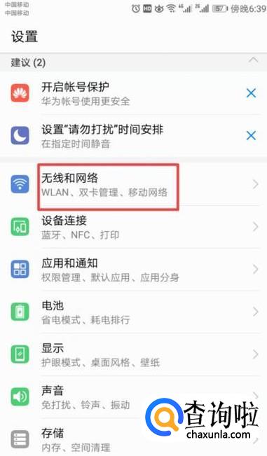之后我们点击无线和网络;