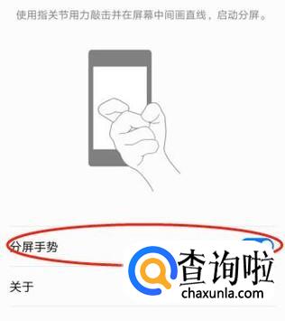 开启“分屏手势”后,打开一个页面,在屏幕上用手指关节敲击一下页面,然后在这个页面中间画一条线就完成分屏了。