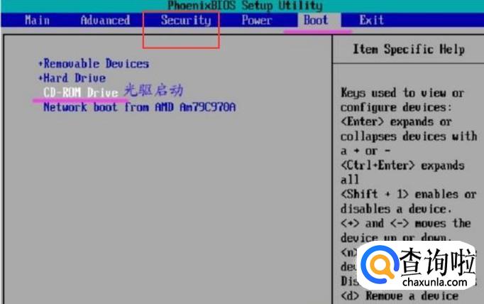 进入后上面第三个:security,安全设置,在这里你可以设置进入bios的密码,保护自己的电脑。