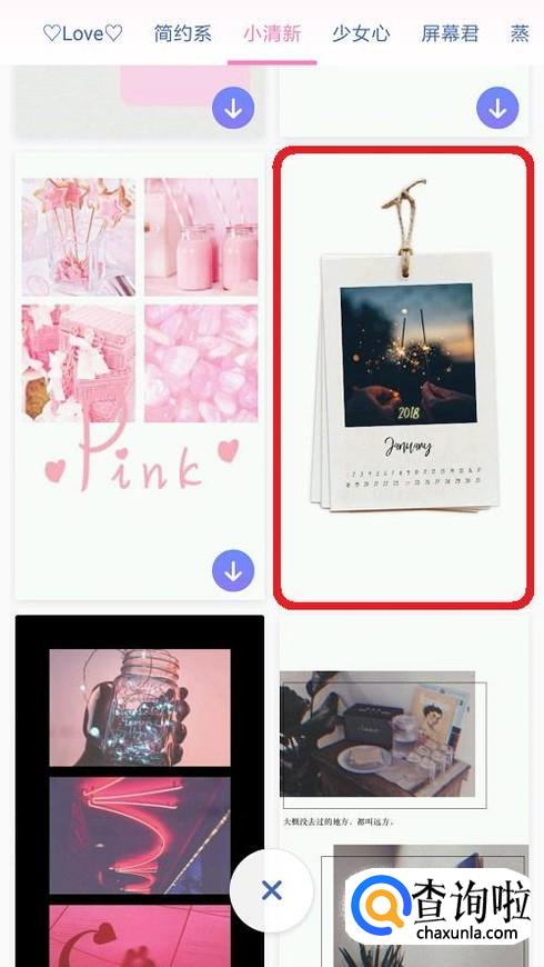 然后我们就能进入海报拼图界面,然后我们在里面找到一个自己喜欢的海报版块并点击下载。