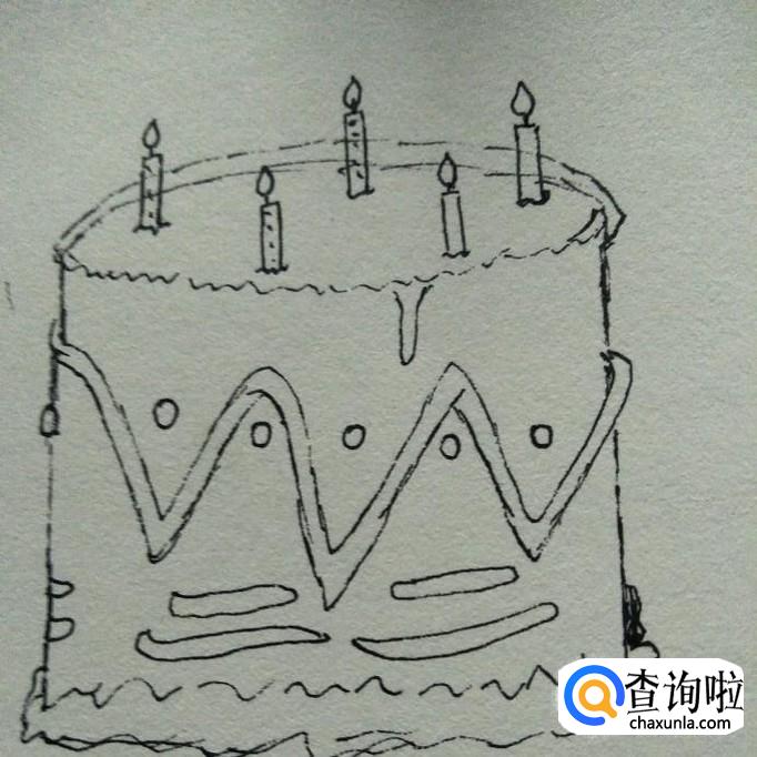 然后重复刚刚的画法,在蛋糕上面多画几根蜡烛