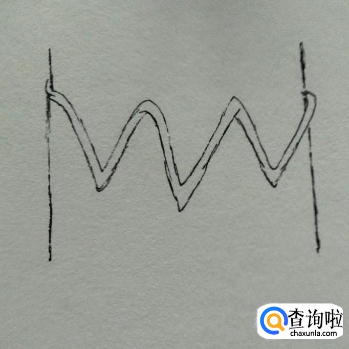 在大波浪左右末端两侧画出两条竖线,如下图所示