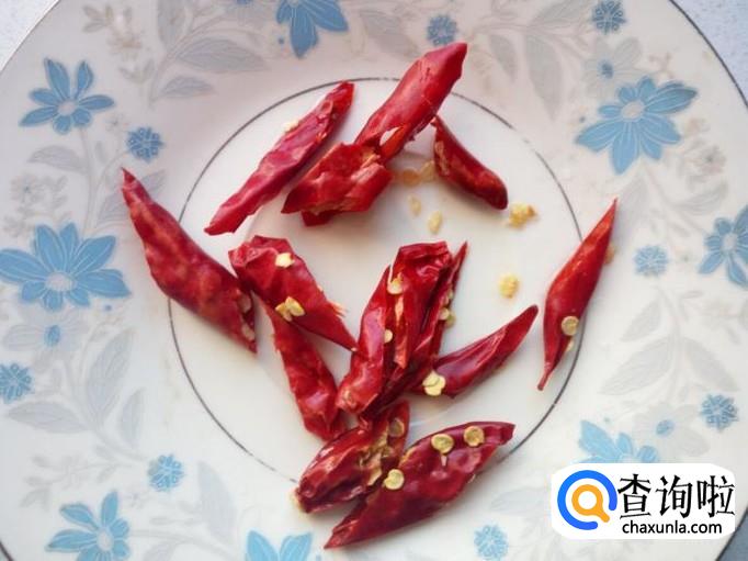红干椒用水清洗干净,控干水分,斜刀切成段。切好葱,姜,蒜,备用。