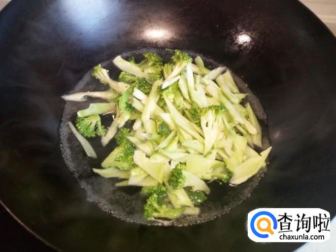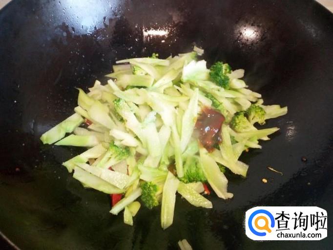 炒至西兰花菜根断生,放入味精,关火出勺。