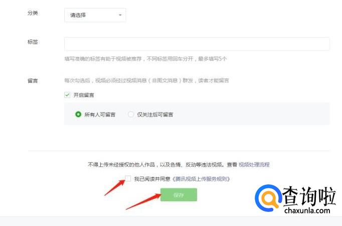 微信公众号对于视频内存这块等等会有一些小要求。正常填写即可,最后要勾选下方的同意,之后再点击确定就可以上传了。