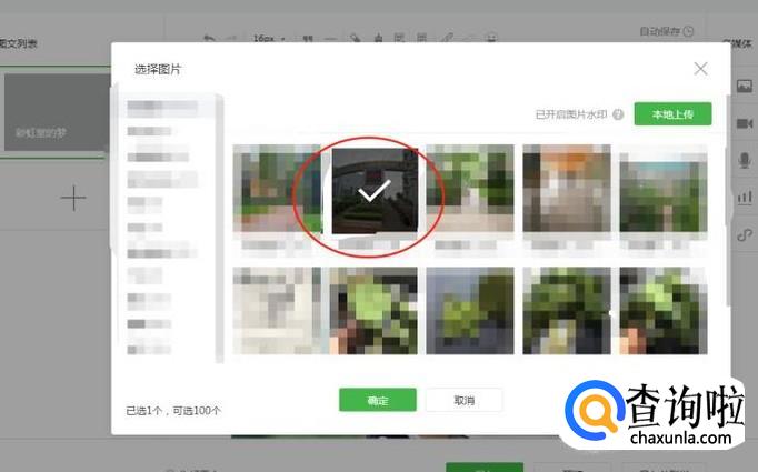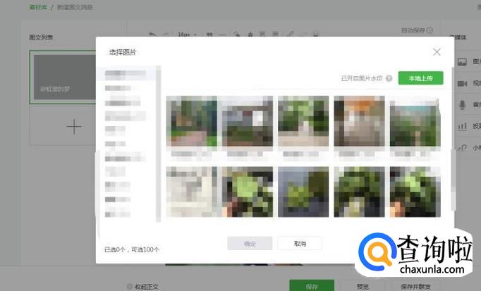 你之前上传在公众号的图片都会在这里面,如果没有你可以点击右上方的本地上传新的图片。