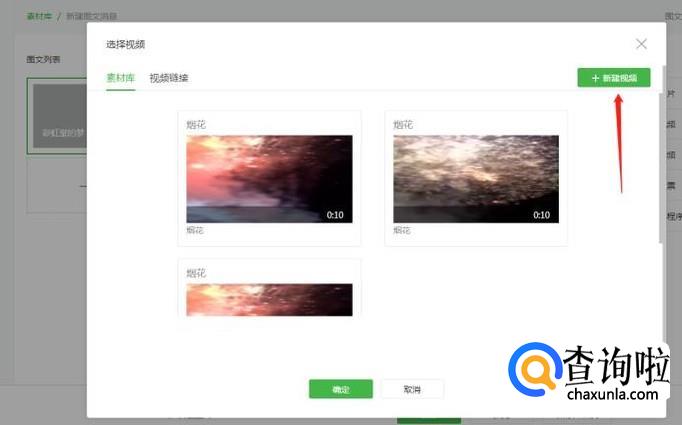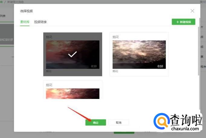 选中视频之后,要点击下方的“确定”上传到公众号里。