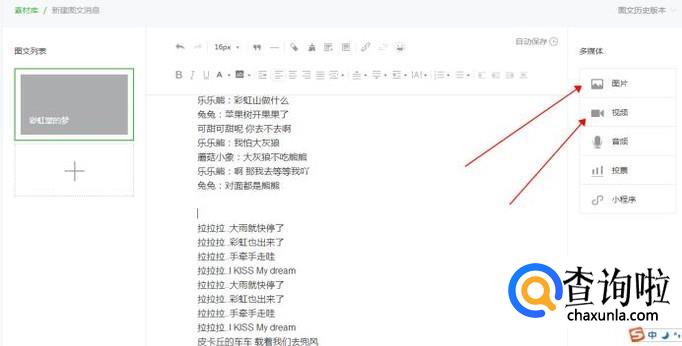 让小编教你如何编辑文章的时候插入图片和视频。