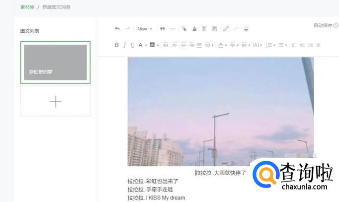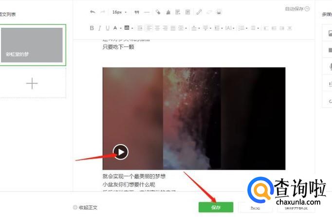 成功之后,文章记得保存,即可发表。