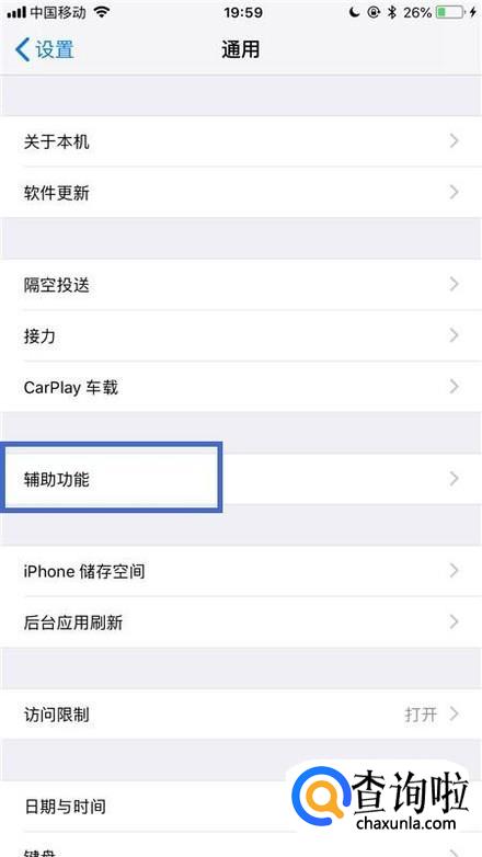 如下图,找到辅助功能并点击它