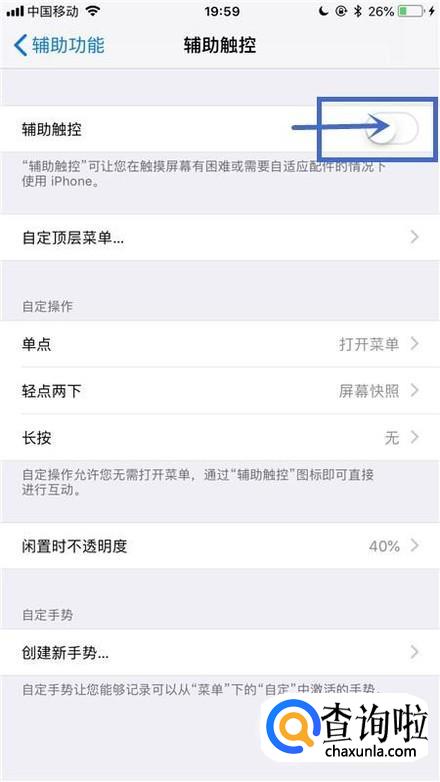 最后点击开启辅助触控的开关就可以了。你学会了吗?赶快动手试一试吧。