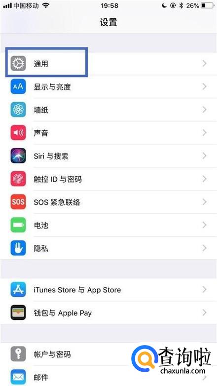 如下图,找到通用并点击它。