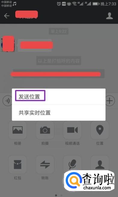 之后就会弹出具体的位置,我们点击右上角的发送;