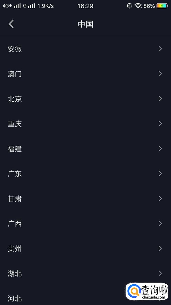 进入之后,点击“地区”,进入下一页面,如图所示。