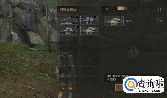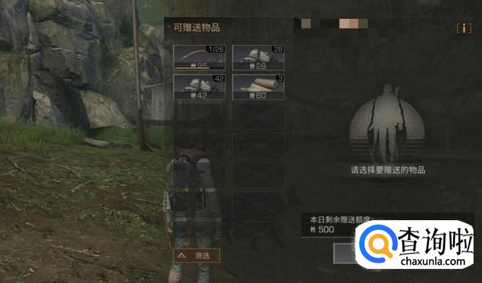 选择要送给好友的东西,只能在背包里面选择,选好之后,点击确认赠送就OK了。