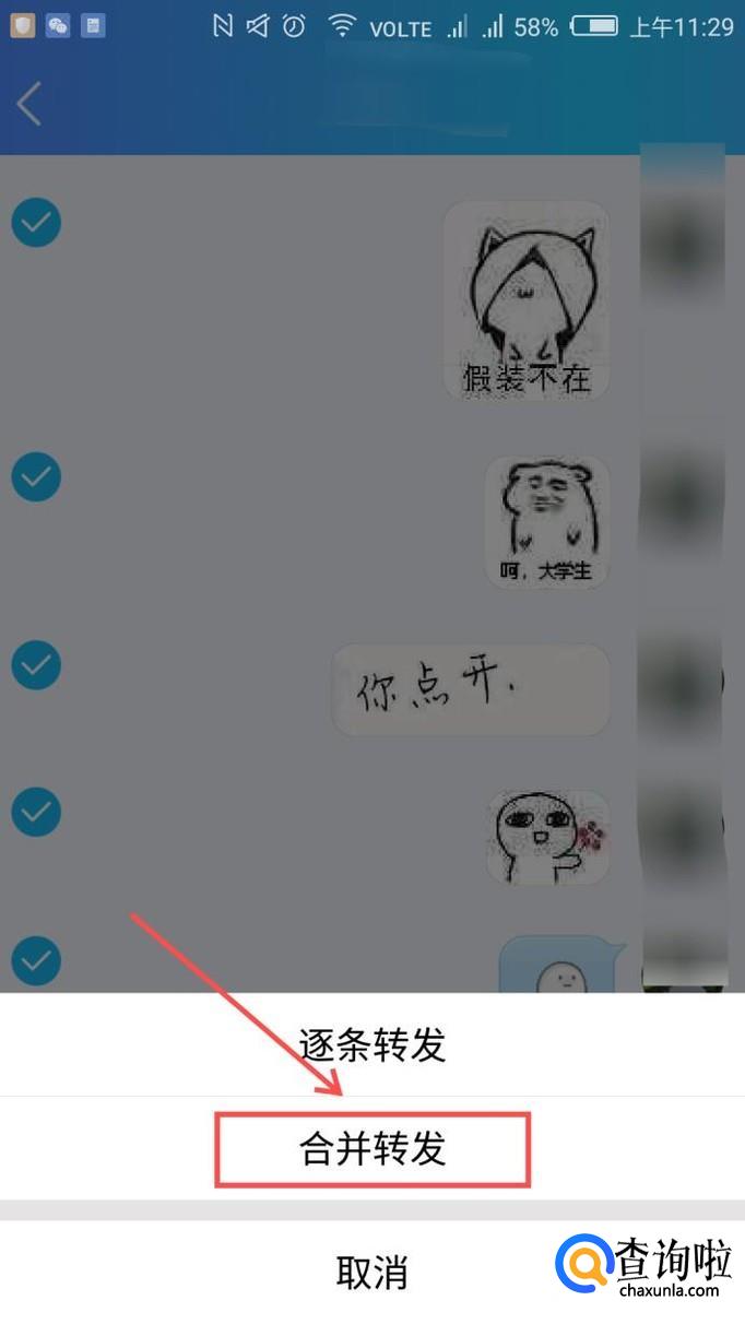 因为是打包转发,所以我们需要点击“合并转发”。