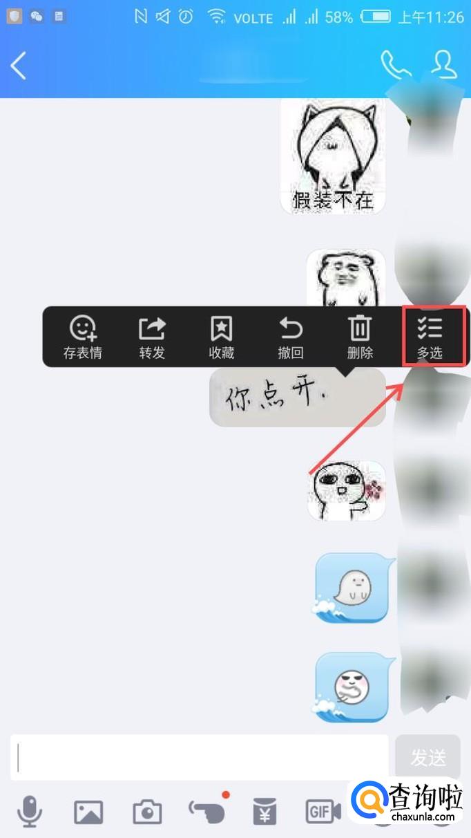 打开QQ,找到你要打包发送的聊天记录。