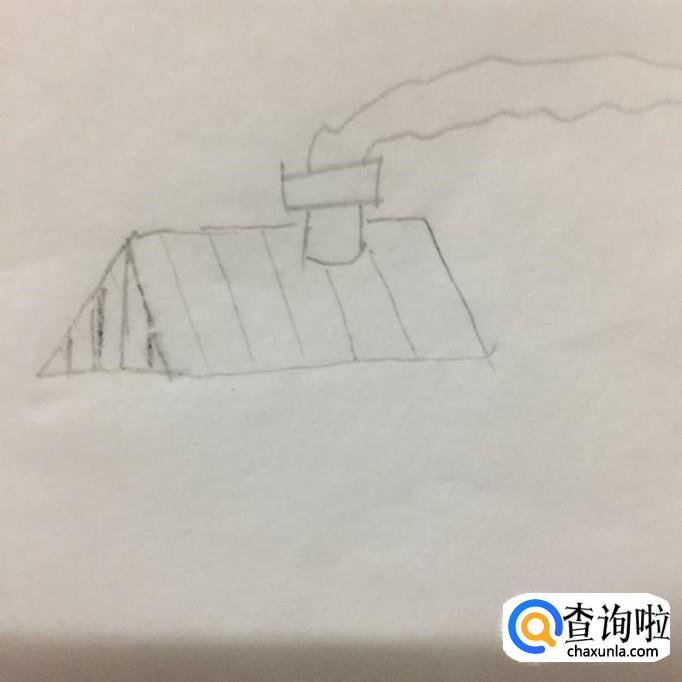 首先用铅笔在A4纸上画出烟囱,如下图所示。注意画这部分的时候不要画得太大,因为它的大小直接决定了整体画出来的大小。