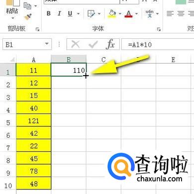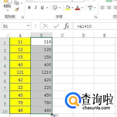 以下图A1:A10这区域单元格的数据为例;A1:A10这区域每个单元格数据都要乘以10;结果显示在B1:B10单元格中。