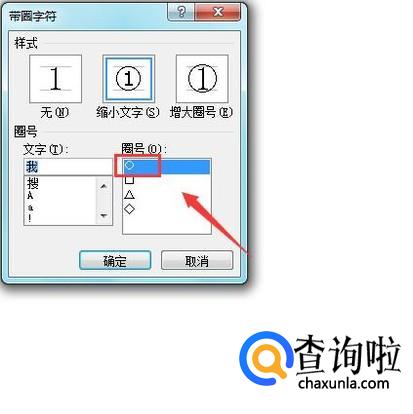 点击带圈字符选项在弹出的对话框内选择圆形,如图所示: