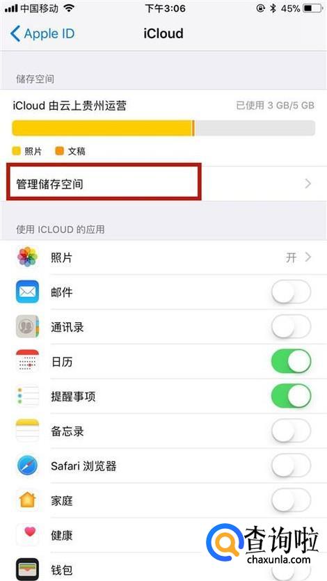 然后管理储存空间,如下图所示。