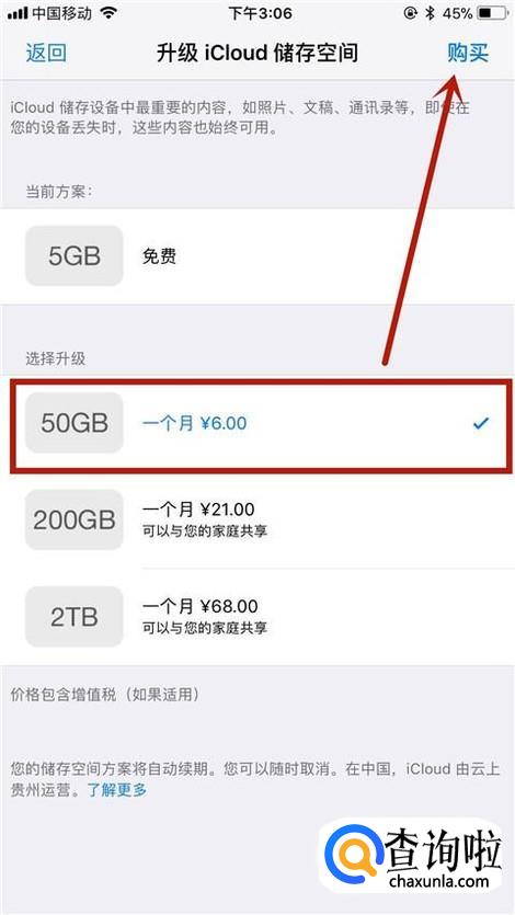 接着选择你要扩大的方案并点击购买,如下图所示。