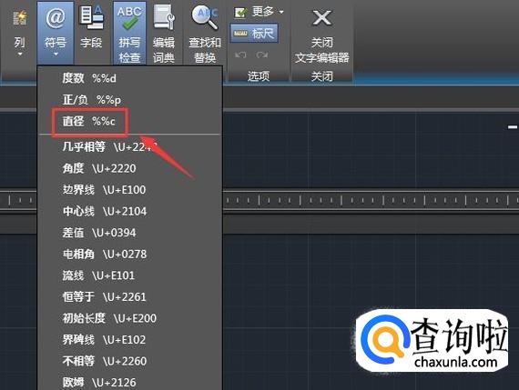 点击符号选项在其子级菜单里找到直径选项,如图所示: