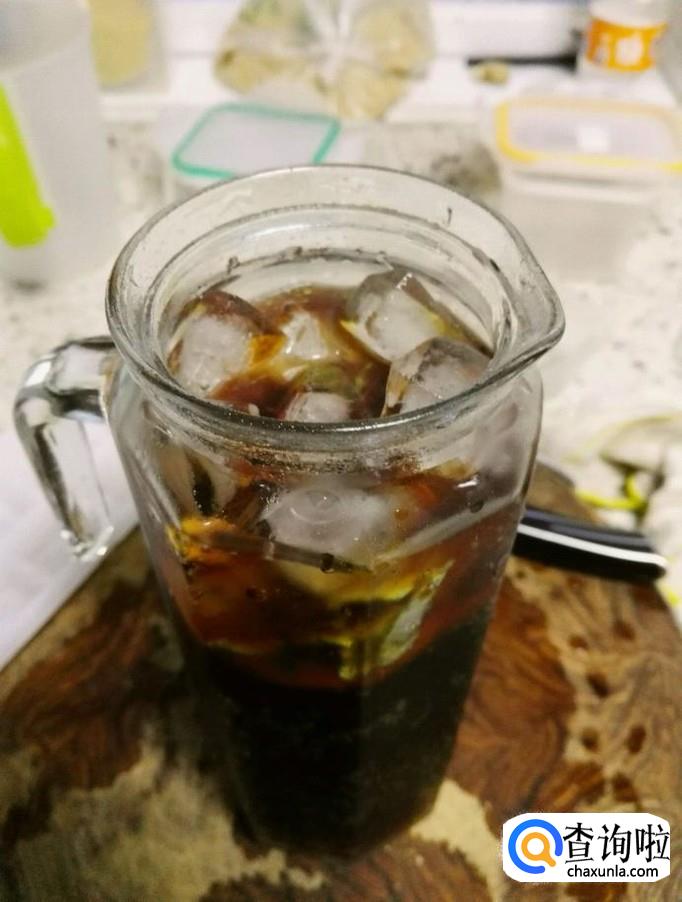 最后我们把切好片的柠檬、可乐、冰冻好的可乐冰块倒入杯子中,这样子柠檬可乐就做好了。