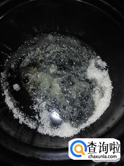 把砂锅烧热,放入适量的糖,加入少量的水。