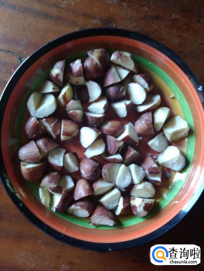 用大火把水煮开,调成中火,慢煮,煮至果仁破裂即可倒入出,放凉。