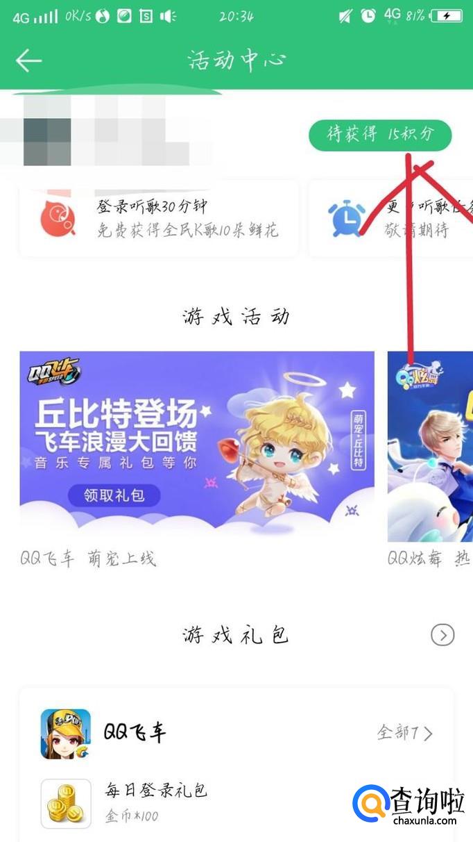 会出现一个新的界面,如图1所示。点击头像下方的活动中心,如图2箭头所示。进入一个新的界面,如图3所示。