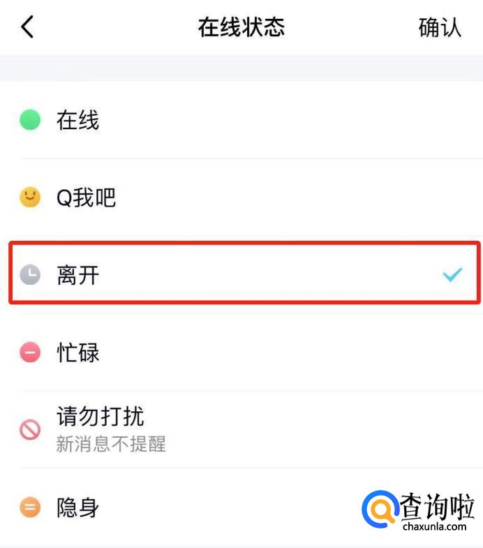 在打开的在线状态界面,选择离开选项,点击一下。如图所示。