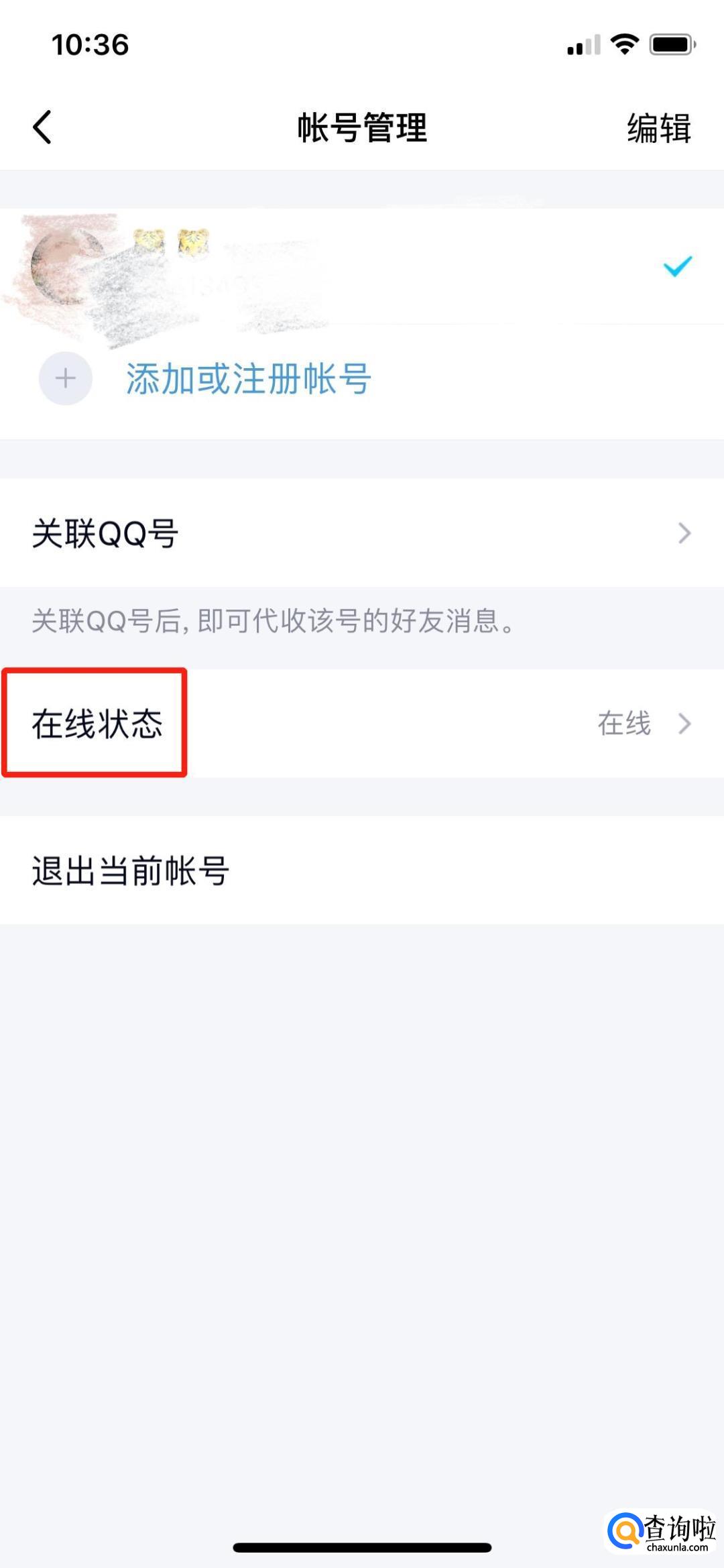 在打开的账号管理界面,能看到在线状态设置,点击打开。如图所示。