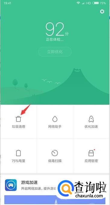打开安全中心后我们先点击垃圾清理。