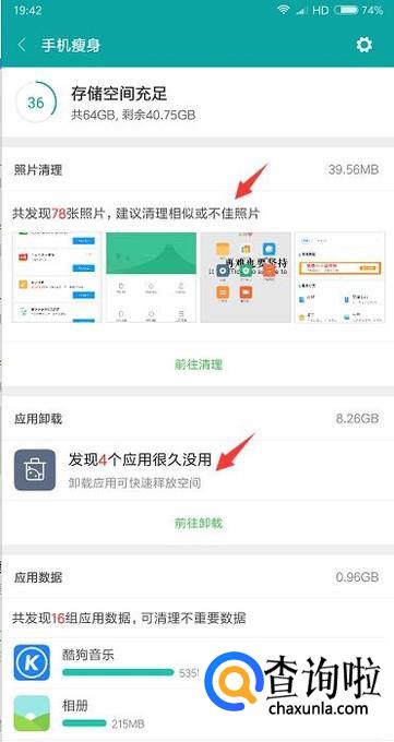 最后我们可以通过清理不佳或者相似的图片, 还可以卸载一些不用的应用来进行内存清理。
