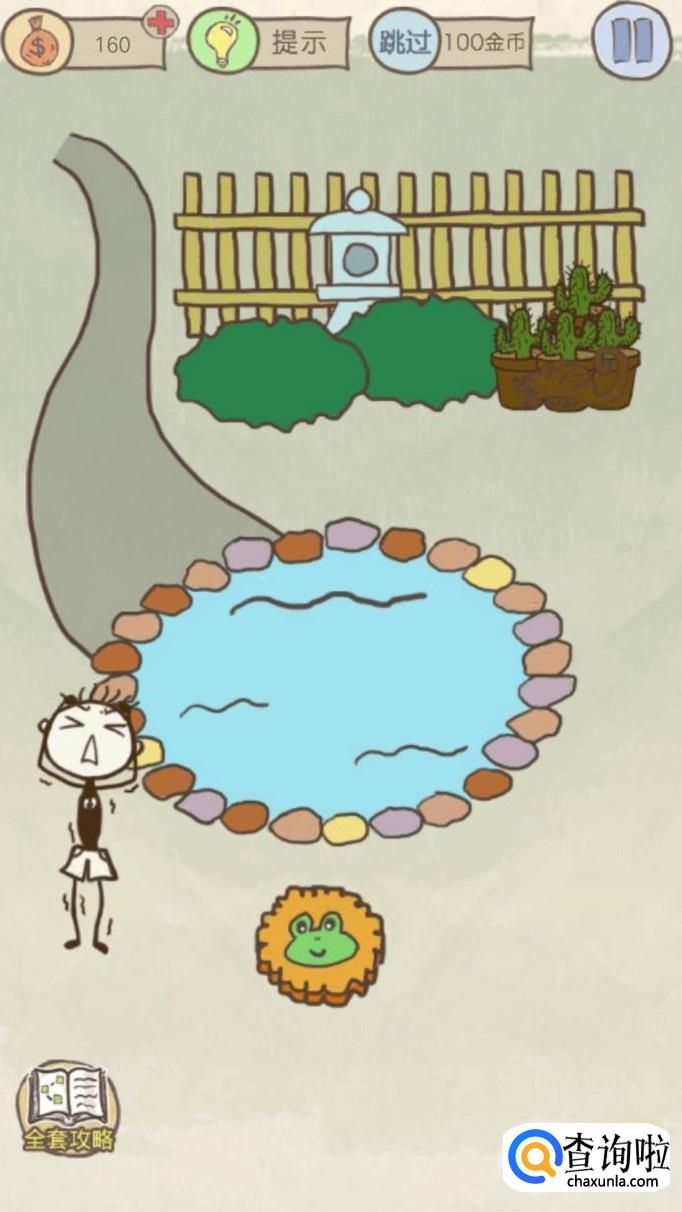 第七关:在仙人掌的花盆处有一条变色龙,将变色龙移到青蛙饼干上,然后把饼干移到史小坑身边,让史小坑吃下,他就具有变色龙的技能了,然后就可以躲起来啦。