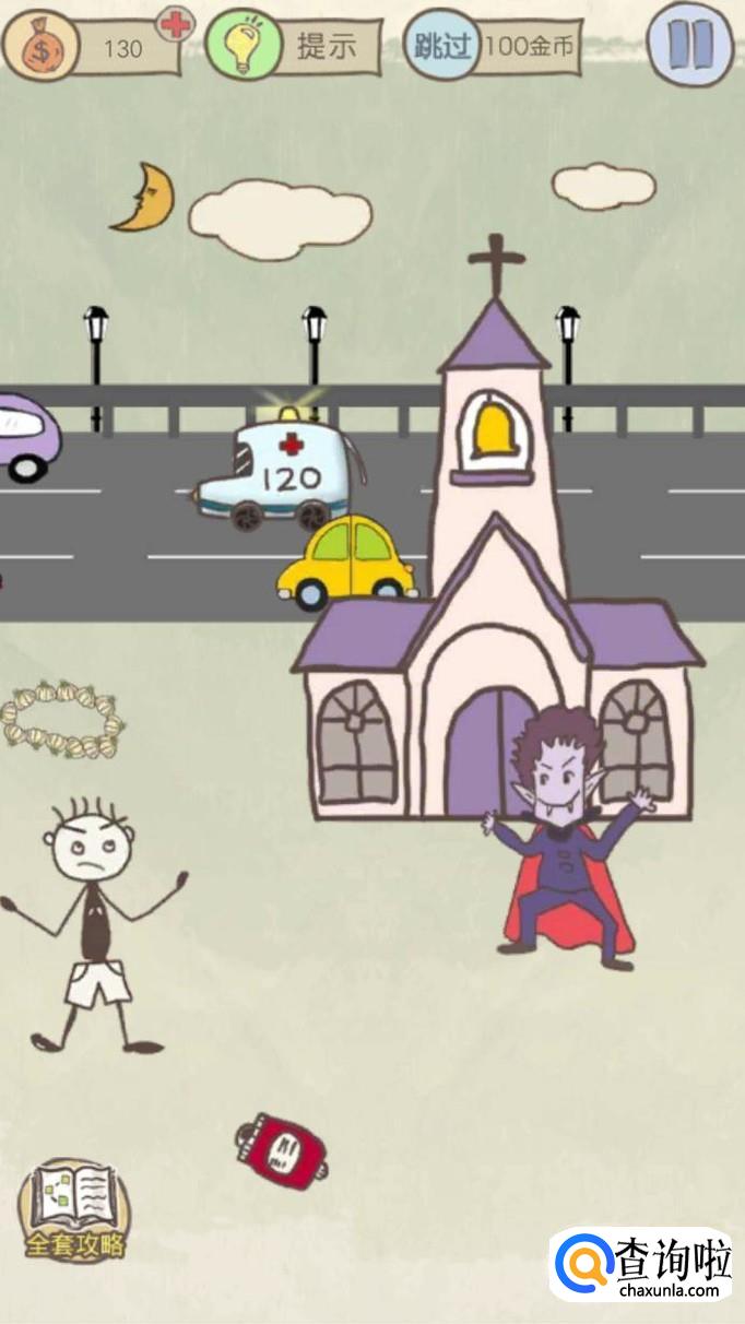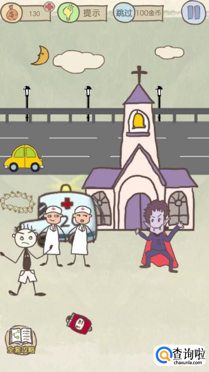 第四关:将路边路过的救护车移到史小坑旁边,救护车里面的医护人员就会认为吸血鬼是神经病,然后将他带走。