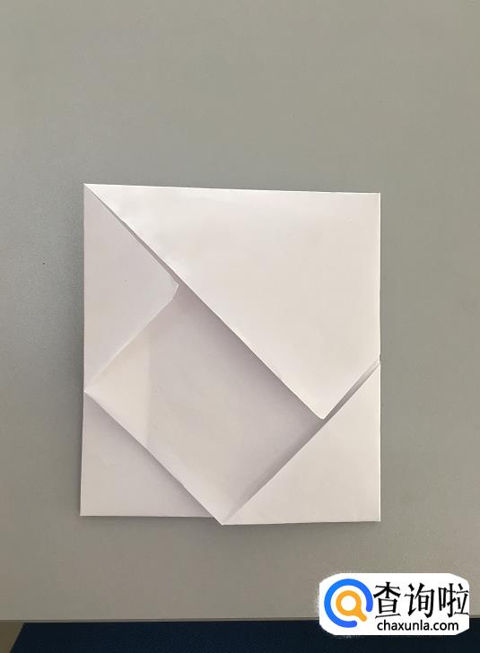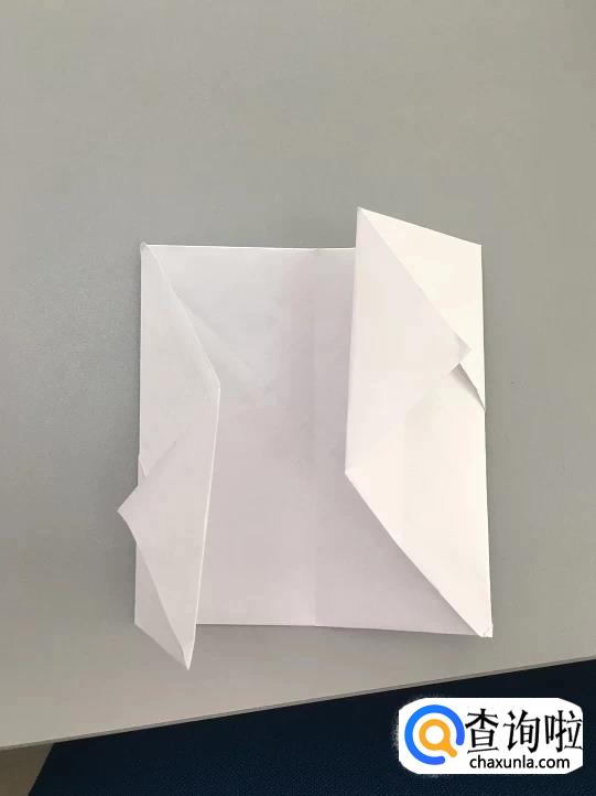 将两角沿线再对折,并且用剩下的两角折起两个小三角形,如下图所示;