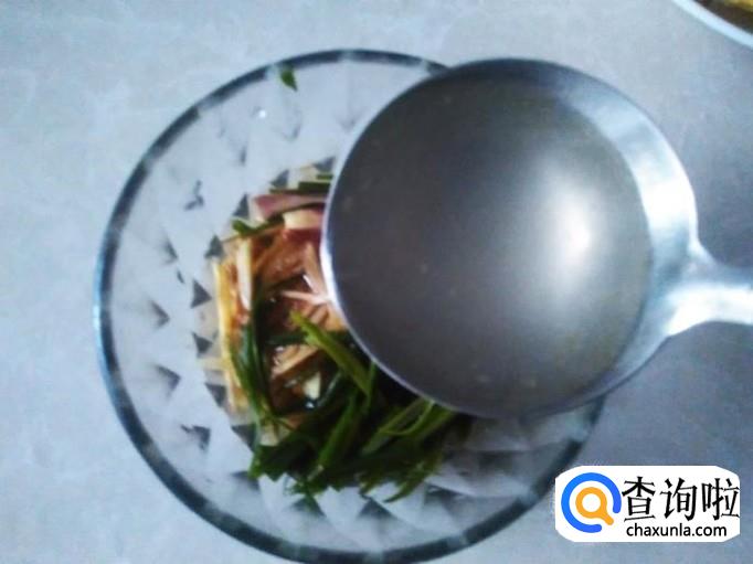 适量的香油,1大勺鸡汤搅拌均匀,就做好调料了。