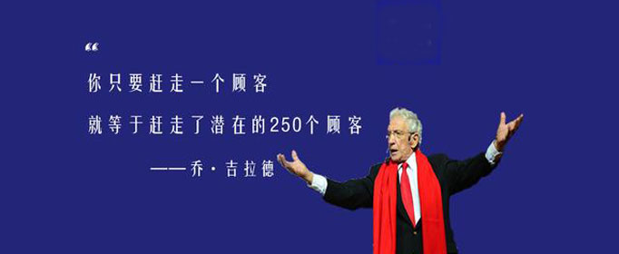 美国著名推销员乔•吉拉德在商战中总结出了“250定律”。他认为每一位顾客身后,大体有250名亲朋好友。如果您赢得了一位顾客的好感,就意味着赢得了250个人的好感;反之,如果你得罪了一名顾客,也就意味着得罪了250名顾客。这一定律有力地论证了“顾客就是上帝”的真谛。