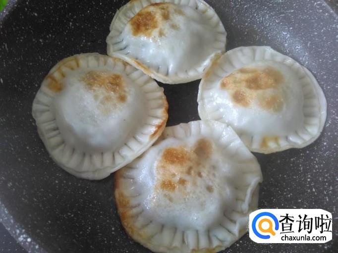 煎得2分钟左右把饺子翻转。