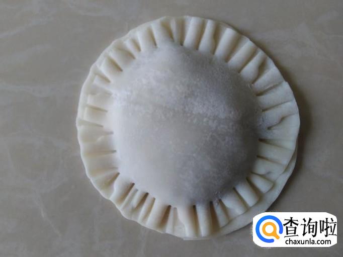 再用另一块饺子皮盖住,用手压紧边缘。