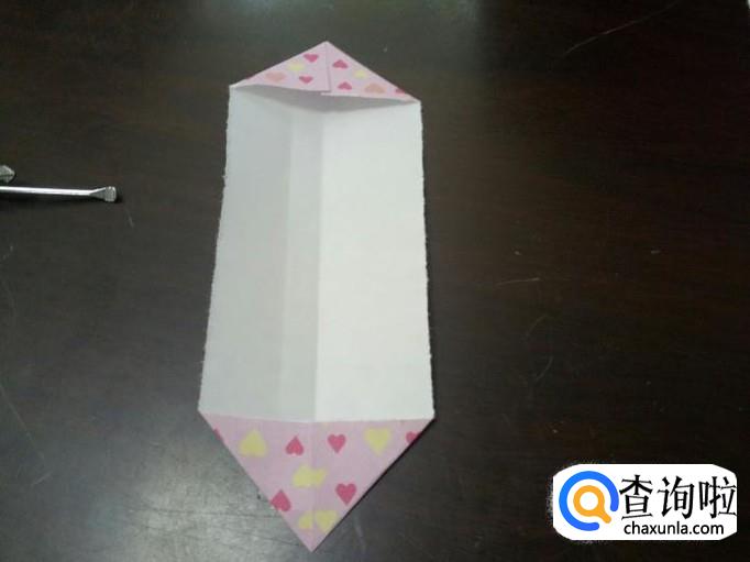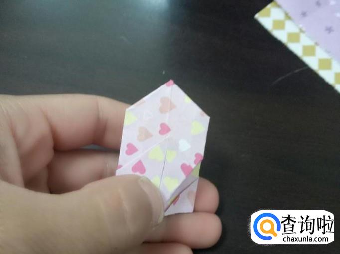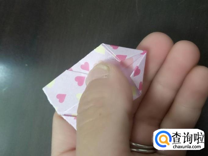对折,两个角往里折,再将折好的角撑到里面