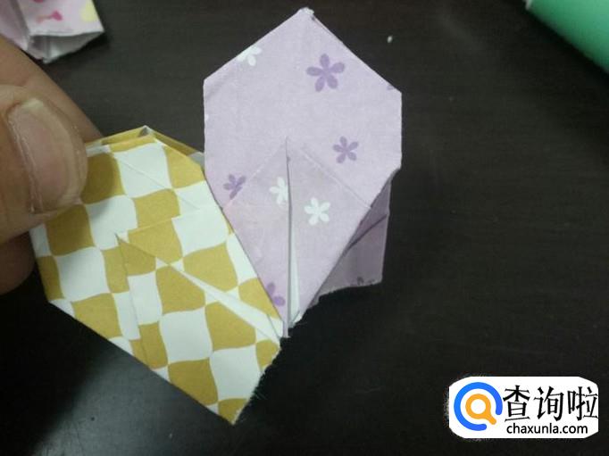 把刚折的这个角撑开折到里面