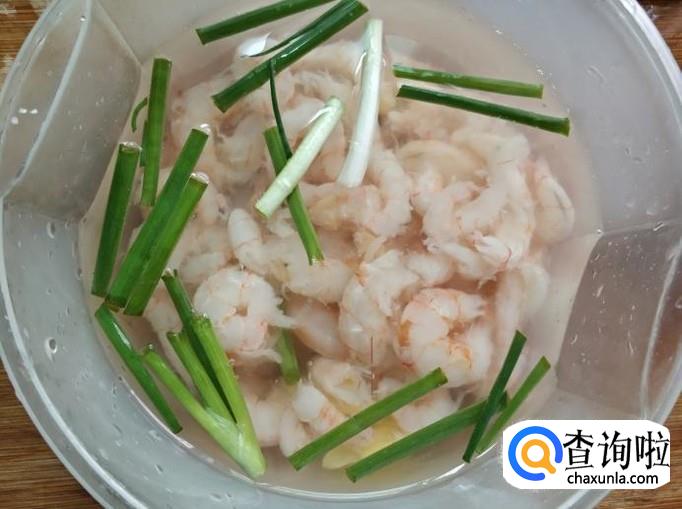 将虾放入碗里,加入适量的水,然后将切好的葱和姜放入,让虾泡10分钟左右,去掉虾的腥味。
