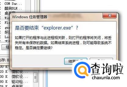 然后点击结束explorer.exe的进程,如下图所示。