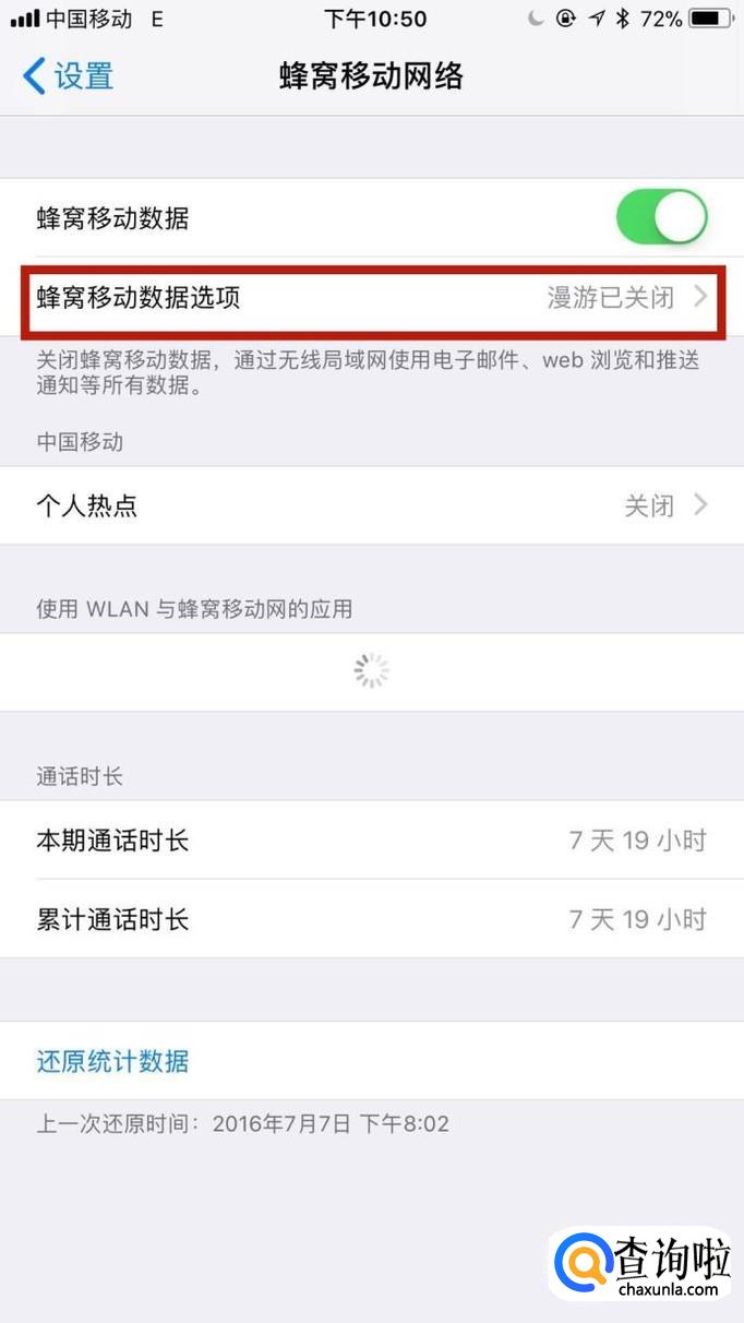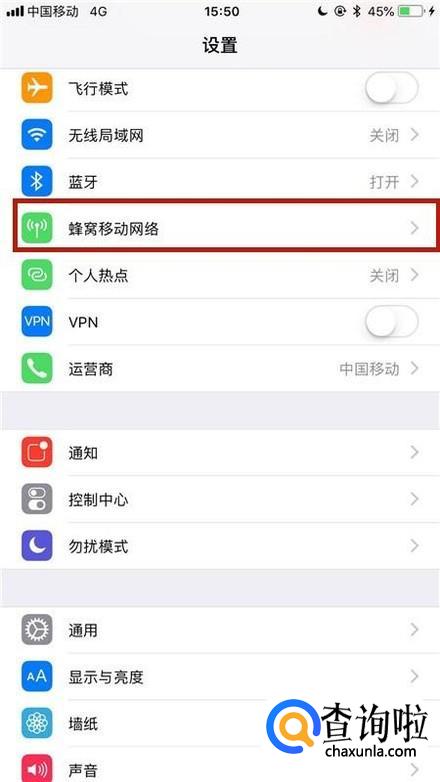 然后点击蜂窝移动数据选项,如下图所示。