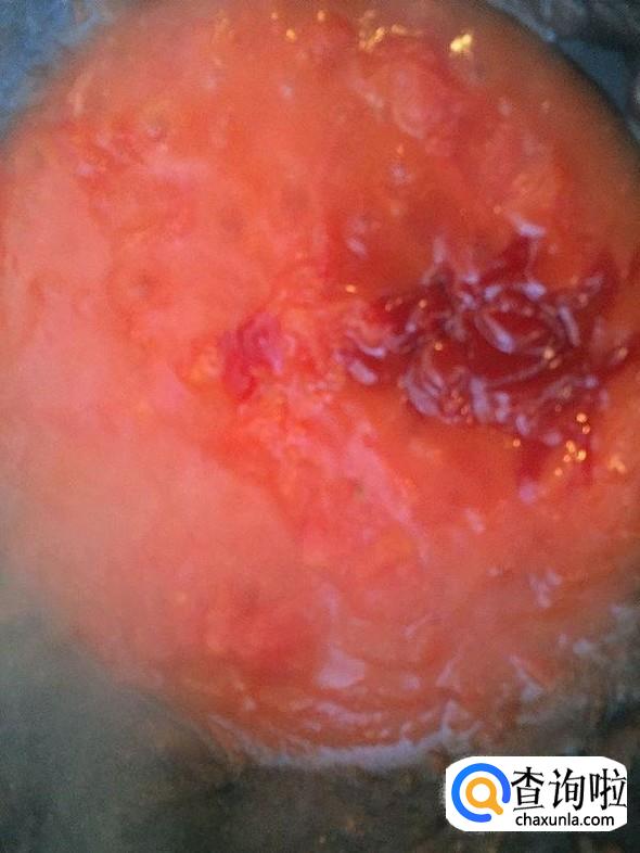 把番茄炒至出汁,可以用铲子帮助按压按压,加入大量番茄酱,翻炒两分钟,加入盐水鸡精,味精,耗油继续翻炒。可以根据自己的口味选择是否加入辣椒酱
